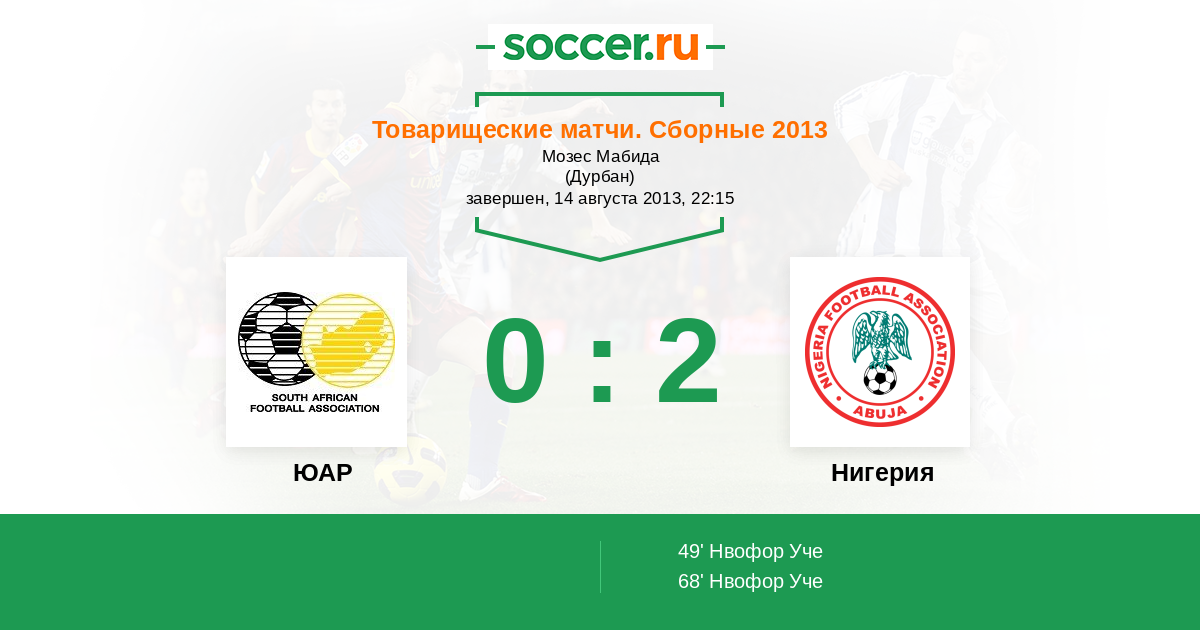 ЮАР - Нигерия: обзор матча 14 августа 2013