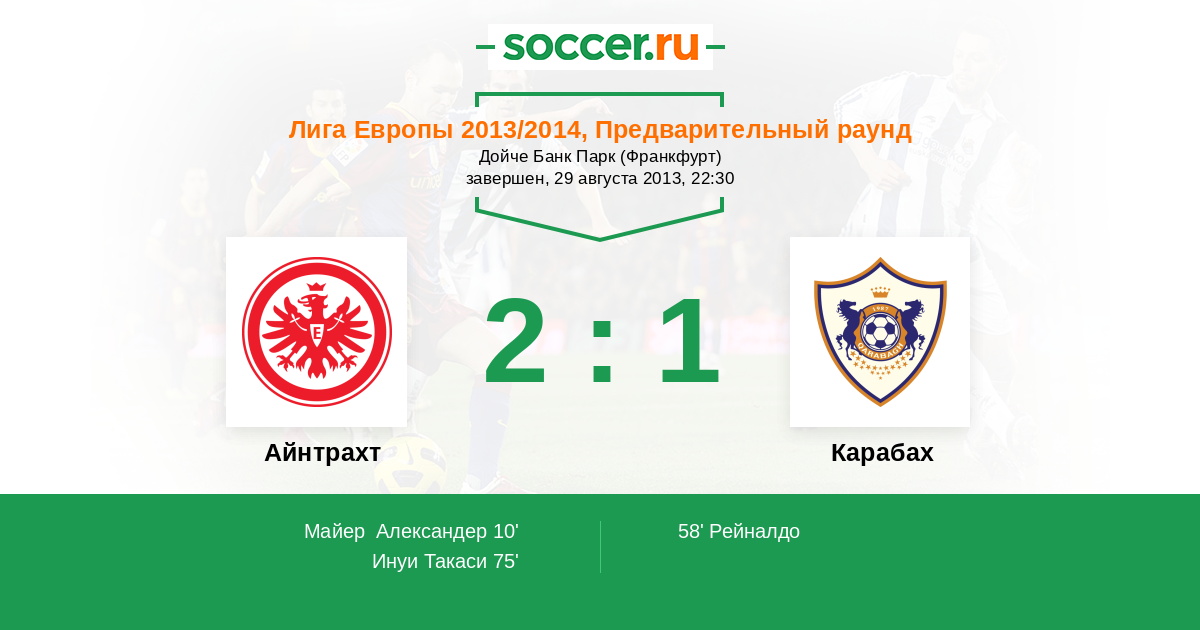 Айнтрахт - Карабах: обзор матча 29 августа 2013