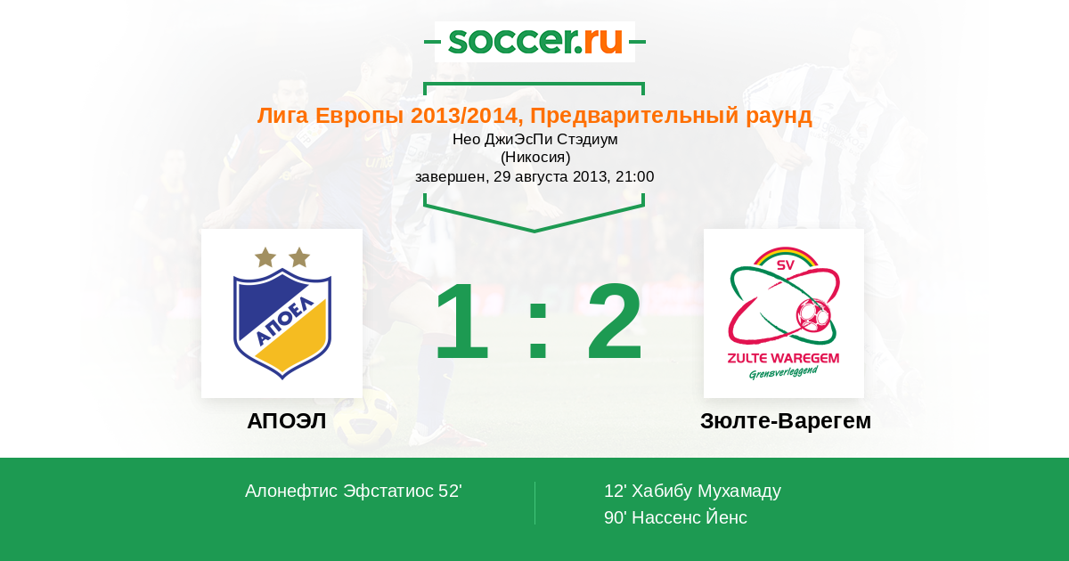 АПОЭЛ - Зюлте-Варегем: обзор матча 29 августа 2013