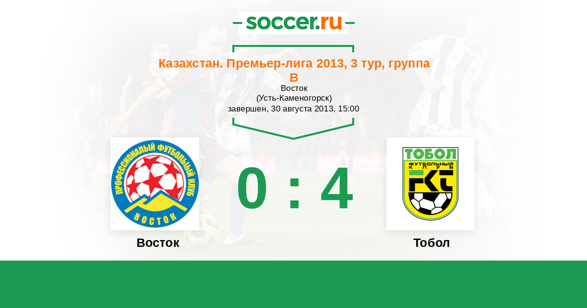 Восток - Тобол: обзор матча 30 августа 2013