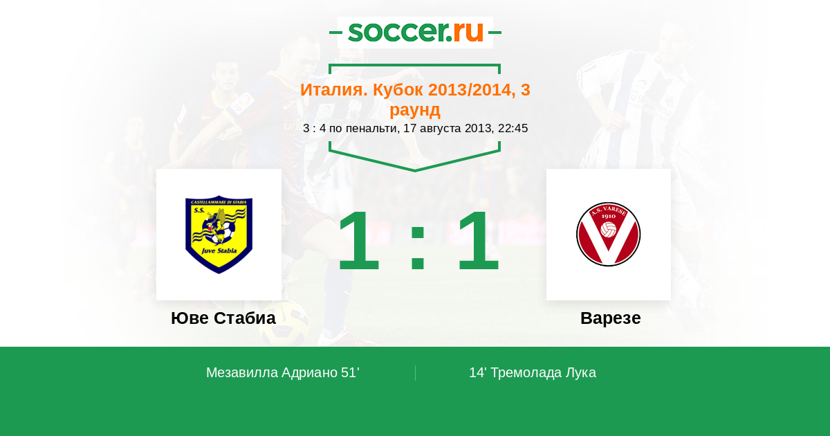 Юве Стабиа - Варезе: обзор матча 17 августа 2013