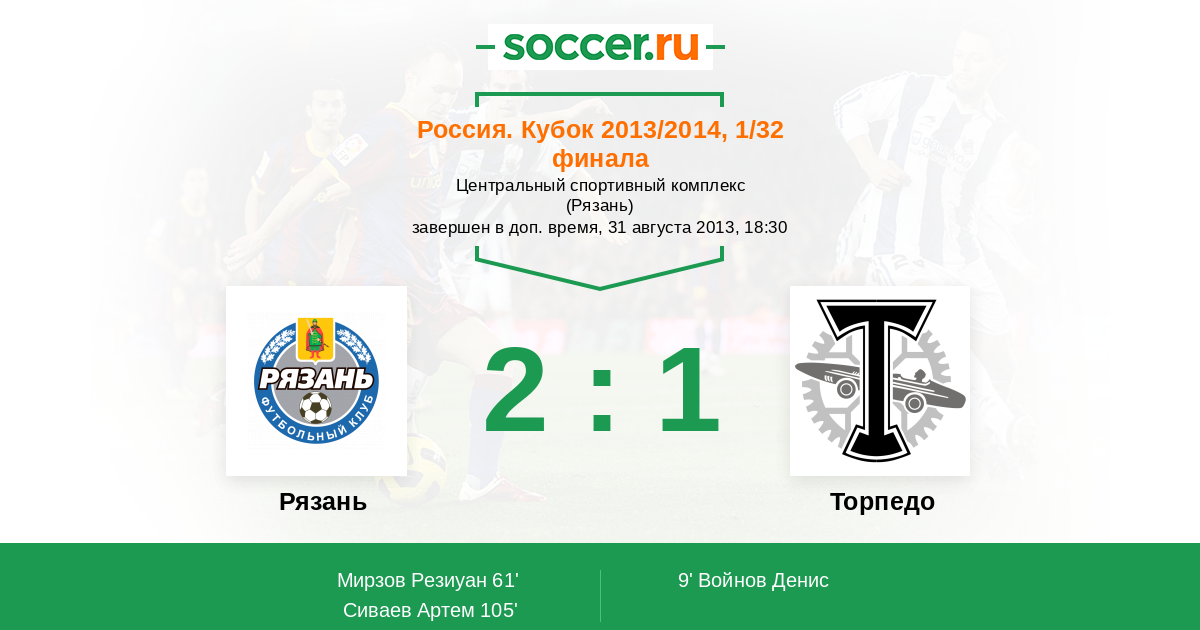 Звезда Рз - Торпедо: обзор матча 31 августа 2013