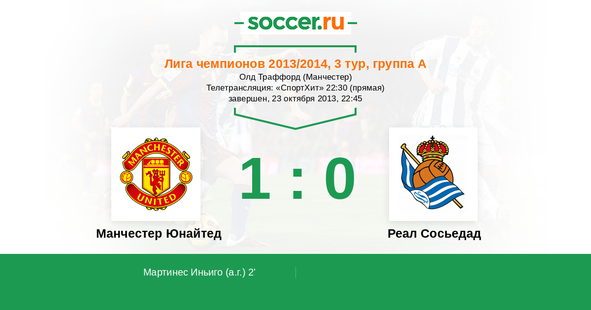 Манчестер Юнайтед - Реал Сосьедад: обзор матча 23 октября 2013