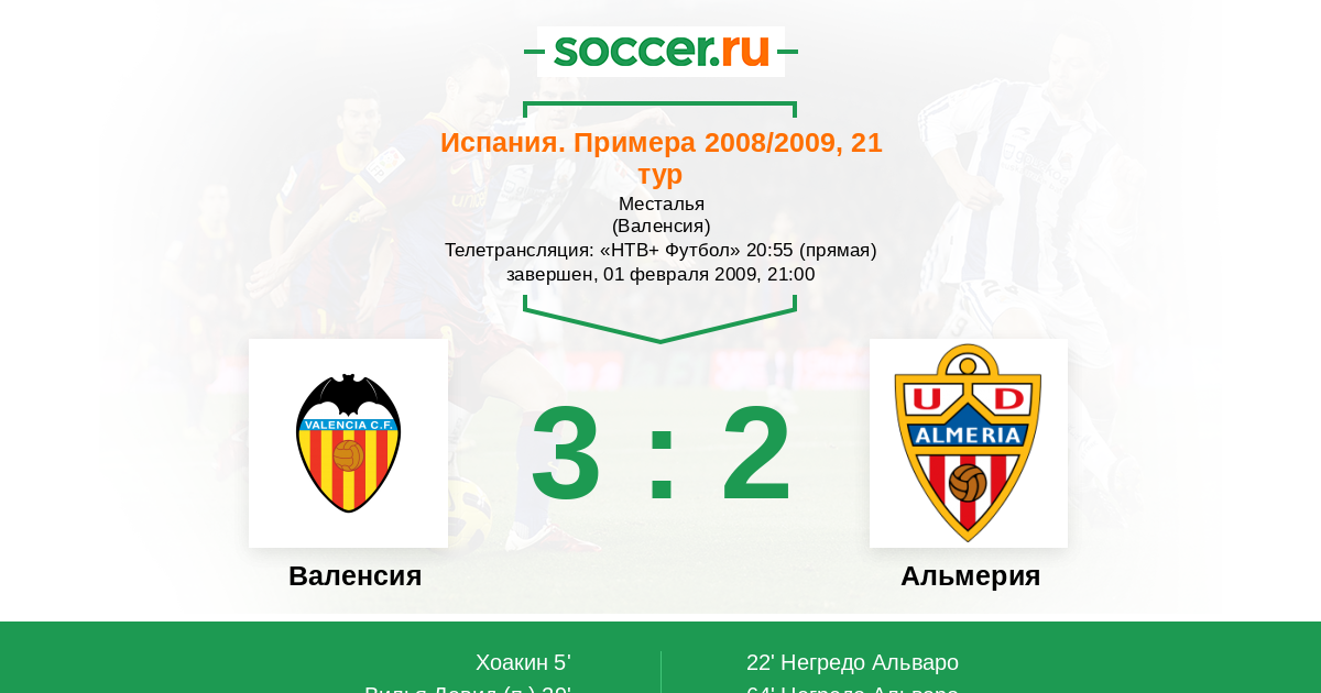 Валенсия - Альмерия: обзор матча 1 февраля 2009
