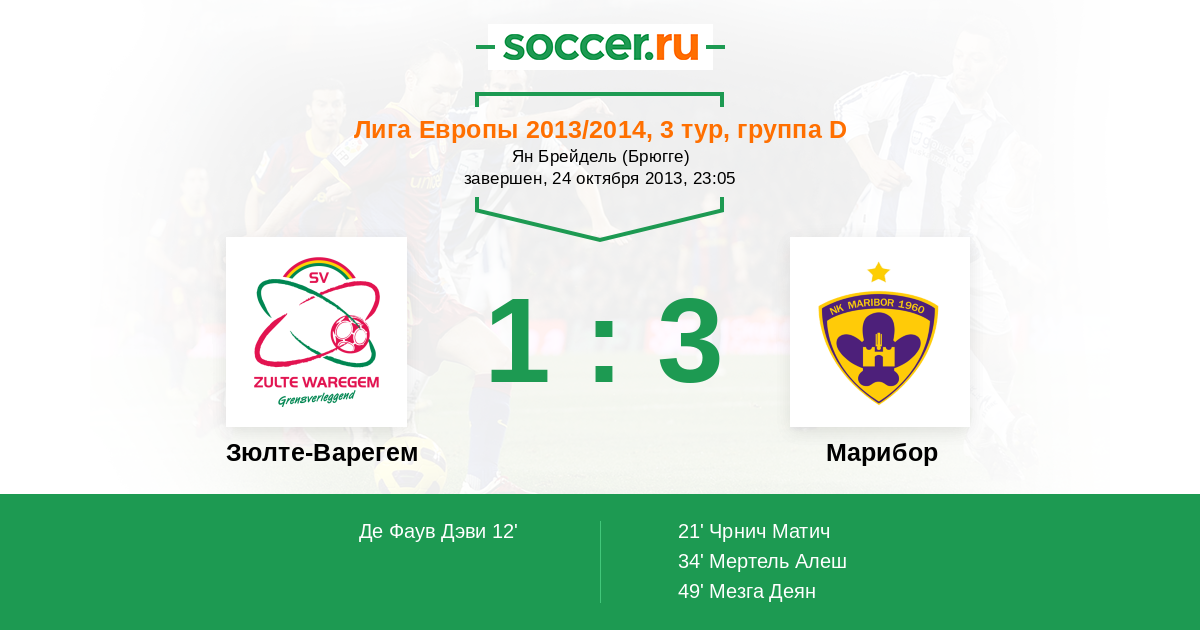 Зюлте-Варегем - Марибор: обзор матча 24 октября 2013
