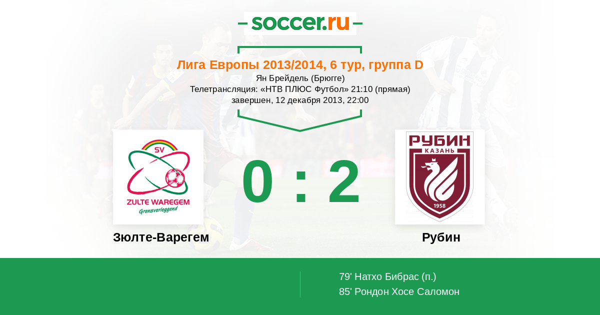 Зюлте-Варегем - Рубин: обзор матча 12 декабря 2013