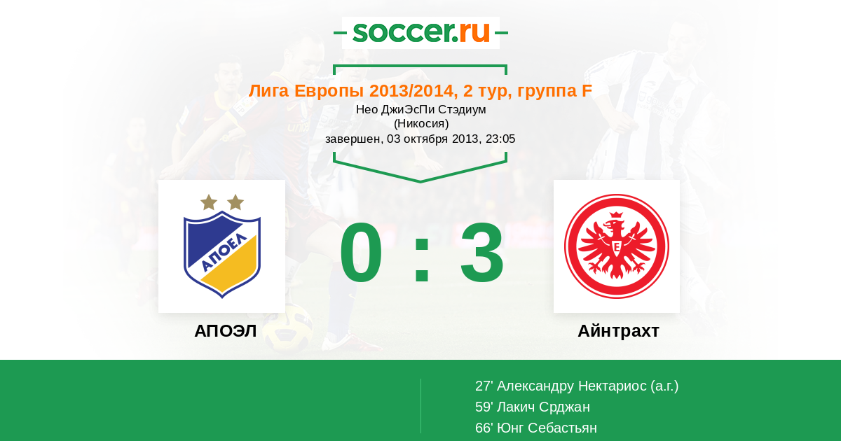 АПОЭЛ - Айнтрахт: обзор матча 3 октября 2013