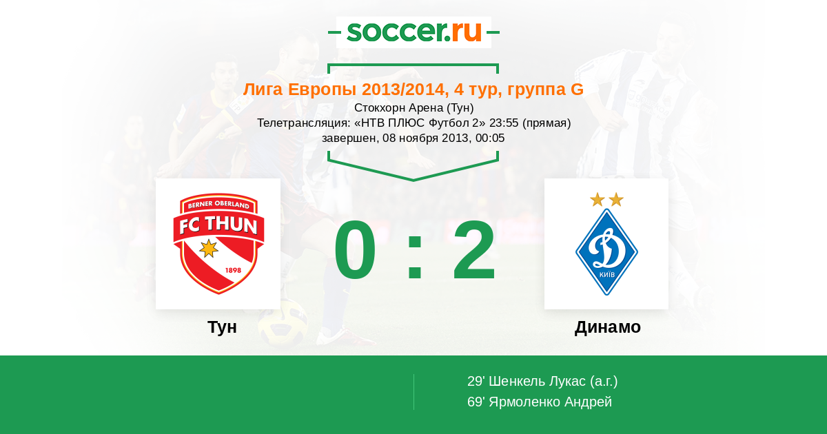 Тун, Стокхорн Арена Телетрансляция: "НТВ ПЛЮС Футбол 2" 23:55 (прямая)