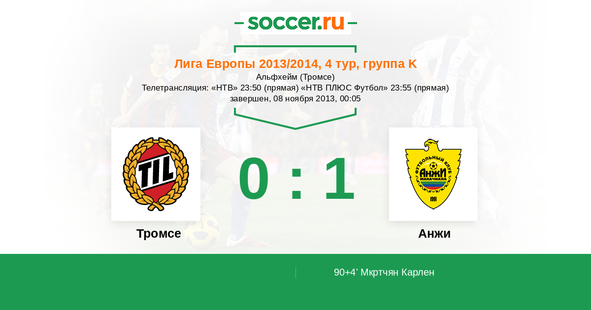 Тромсе - Анжи: обзор матча 8 ноября 2013