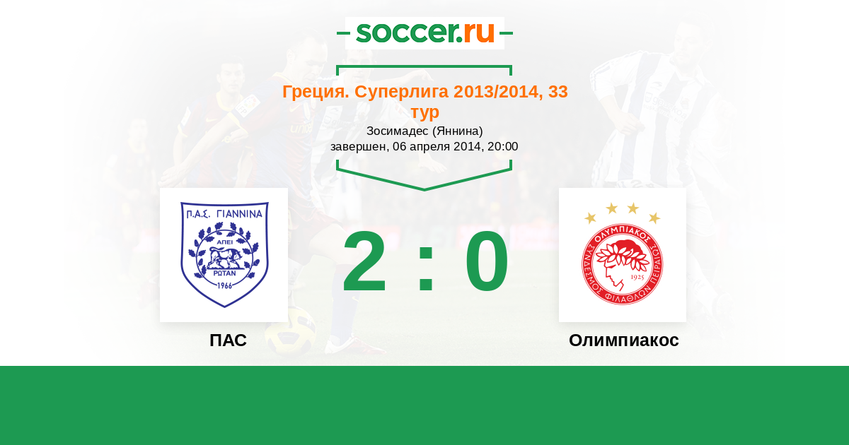 ПАС - Олимпиакос: обзор матча 6 апреля 2014