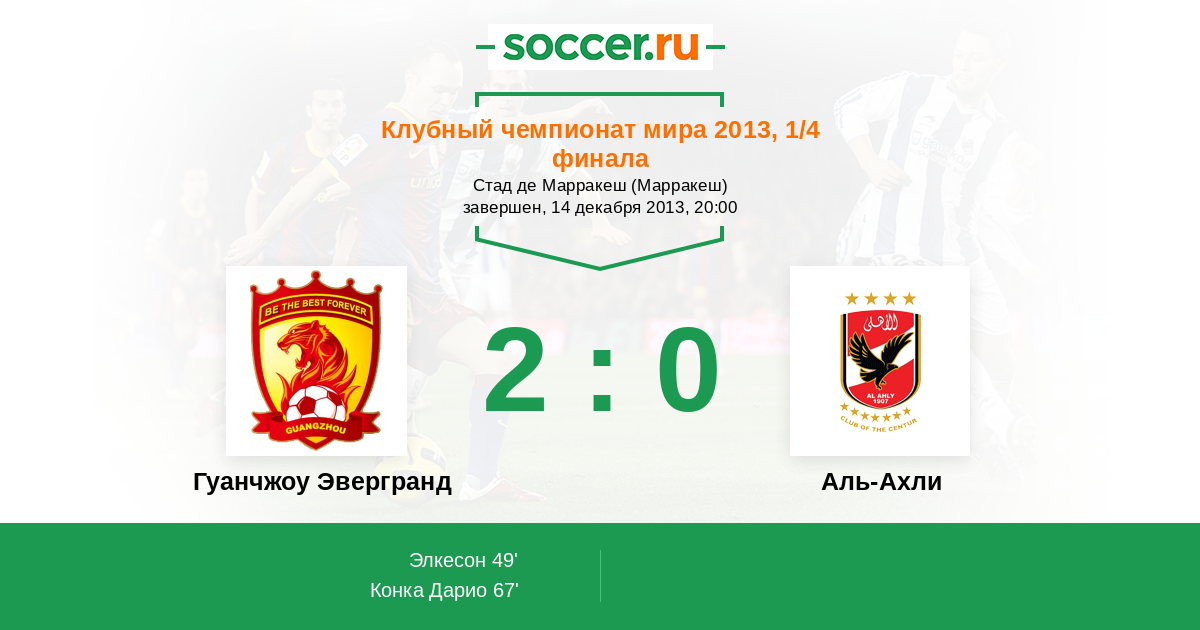 Гуанчжоу Эвергранд - Аль-Ахли: обзор матча 14 декабря 2013