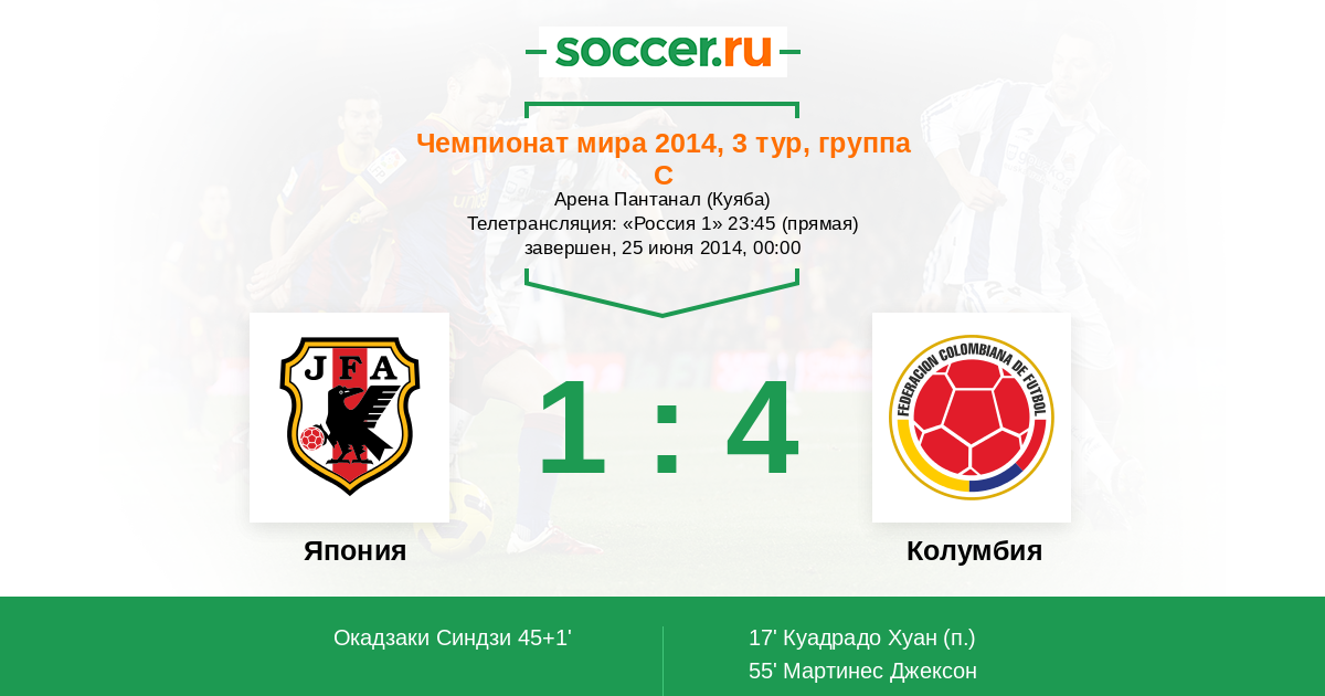Япония - Колумбия: обзор матча 25 июня 2014