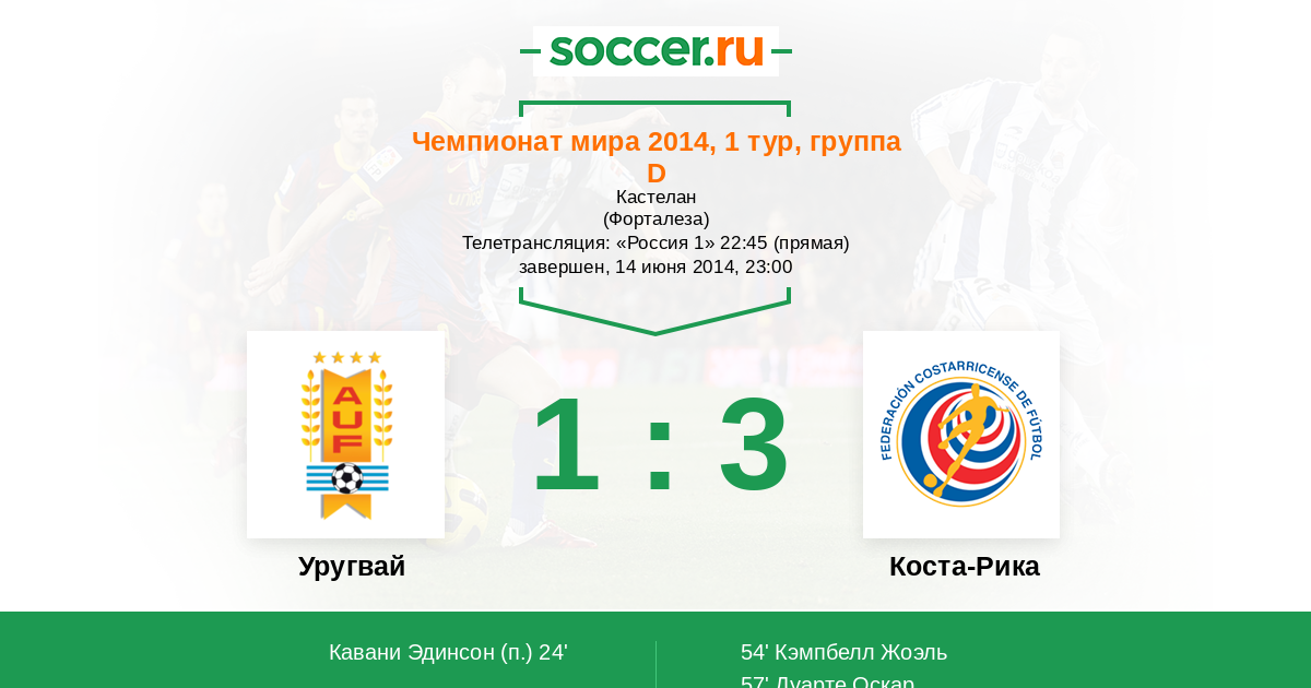 Уругвай - Коста-Рика: обзор матча 14 июня 2014