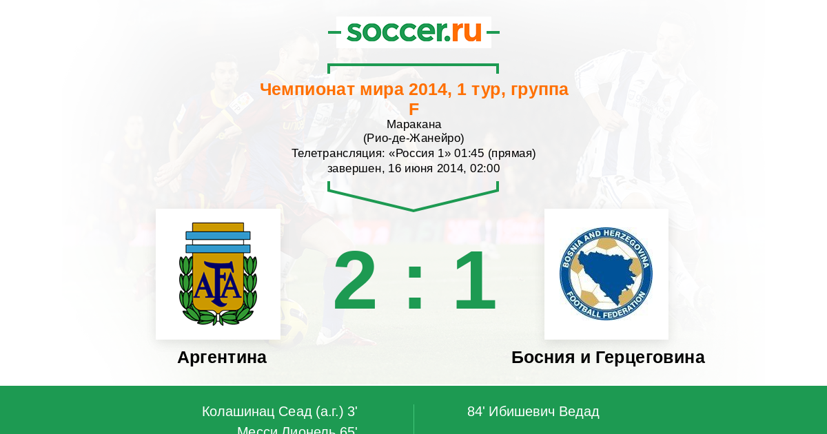 Аргентина - Босния и Герцеговина: обзор матча 16 июня 2014