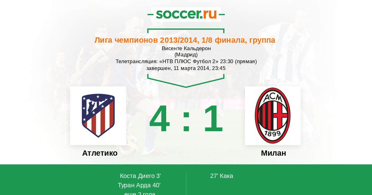 Атлетико - Милан: обзор матча 11 марта 2014