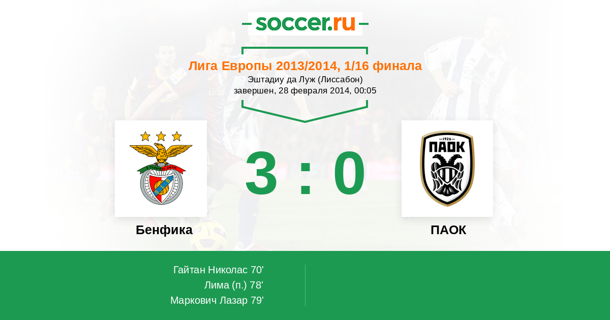 Бенфика - ПАОК: обзор матча 28 февраля 2014