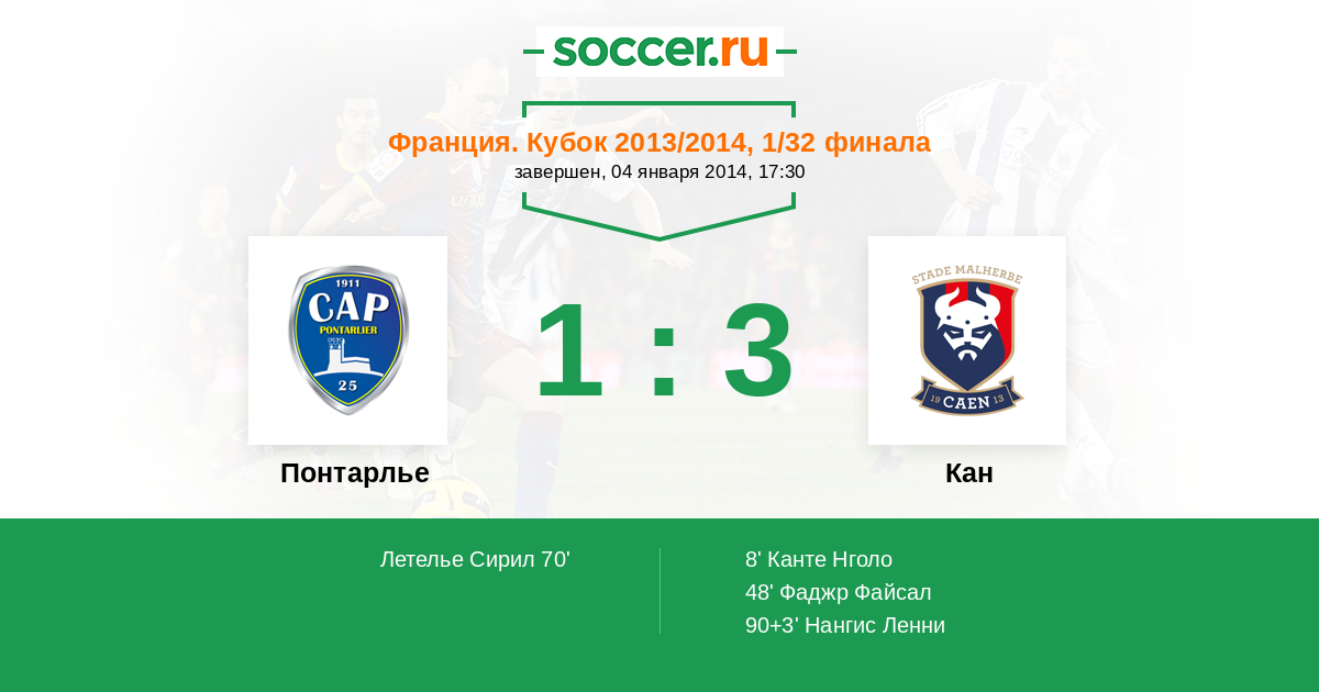 Понтарлье - Кан: обзор матча 4 января 2014