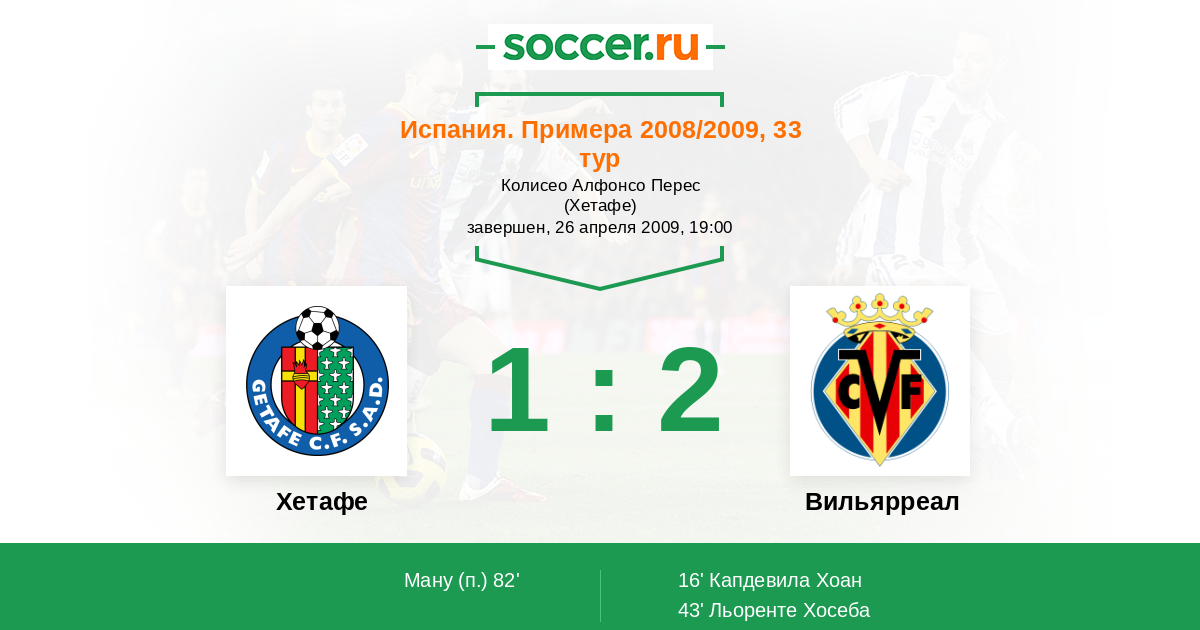 Хетафе - Вильярреал: обзор матча 26 апреля 2009