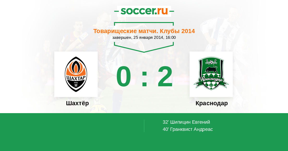 Шахтёр - Краснодар: обзор матча 25 января 2014