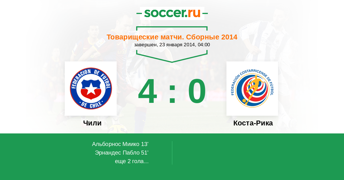 Чили - Коста-Рика: обзор матча 23 января 2014