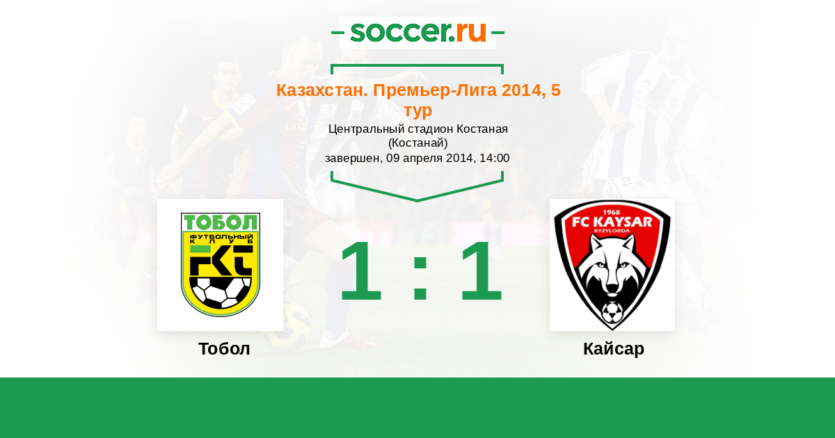 Тобол - Кайсар: обзор матча 9 апреля 2014