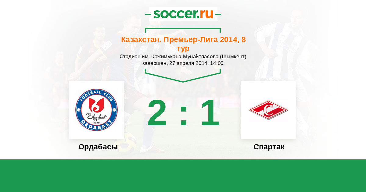Ордабасы - Спартак: обзор матча 27 апреля 2014