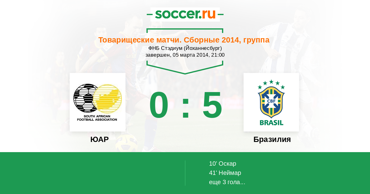 ЮАР - Бразилия: обзор матча 5 марта 2014