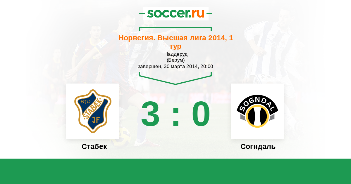 Стабек - Согндаль: обзор матча 30 марта 2014