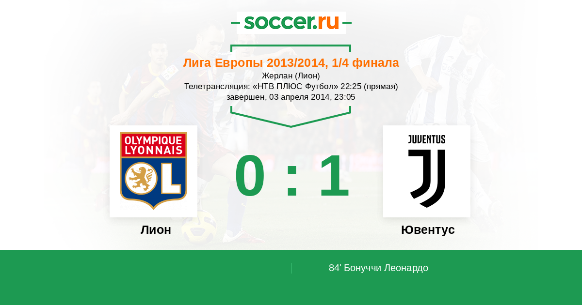Лион - Ювентус: обзор матча 3 апреля 2014