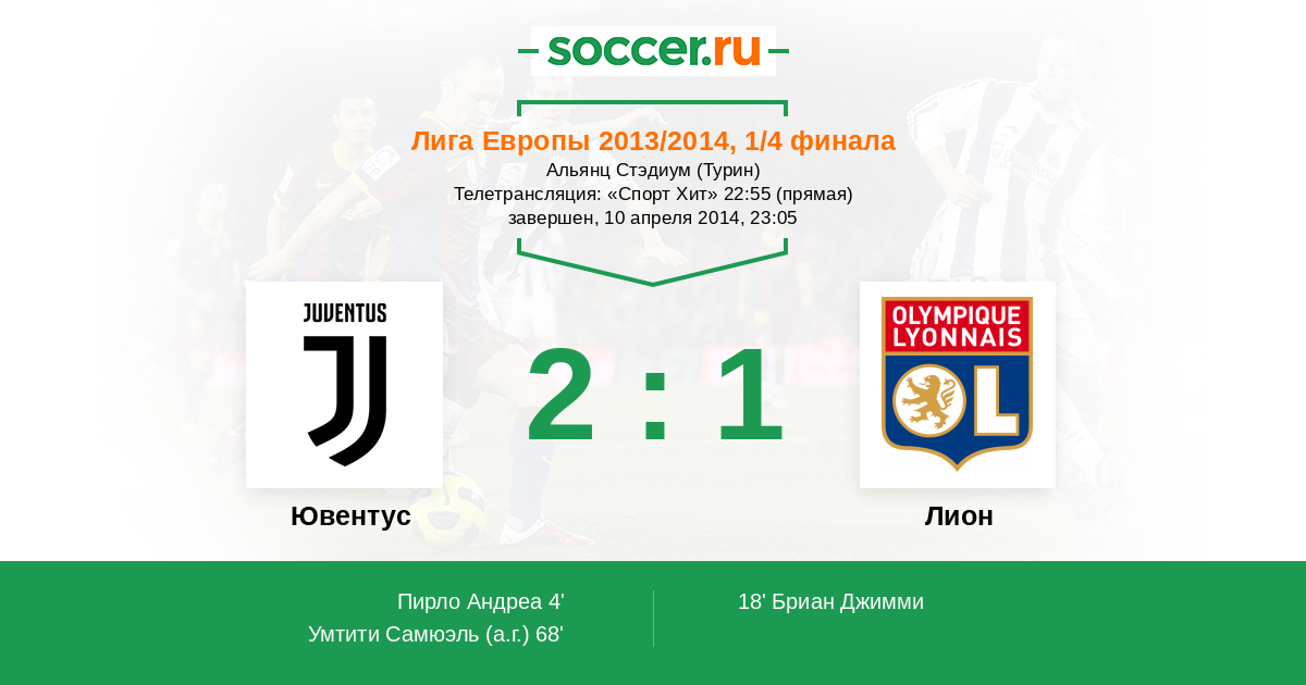 Ювентус - Лион: обзор матча 10 апреля 2014