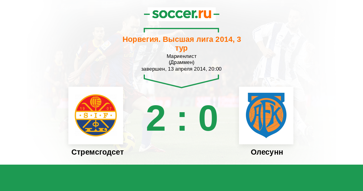 Стремсгодсет - Олесунн: обзор матча 13 апреля 2014