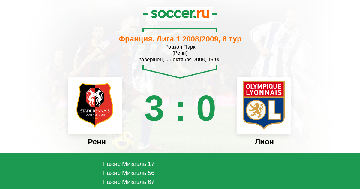 Ренн - Лион: обзор матча 5 октября 2008