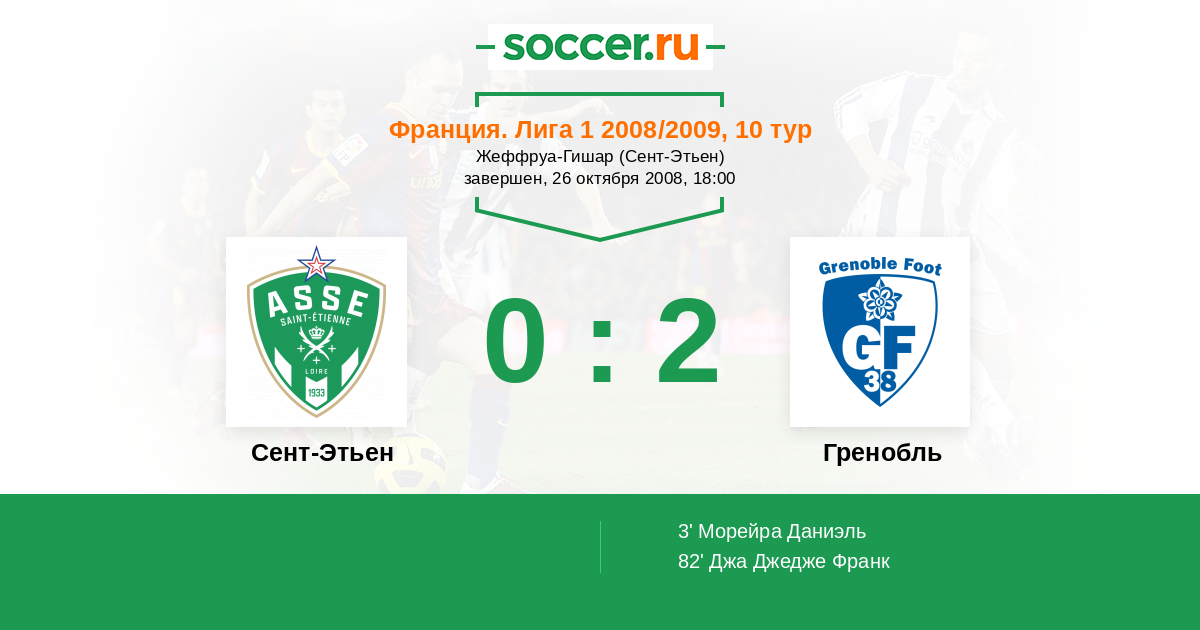 Сент-Этьен - Гренобль: обзор матча 26 октября 2008