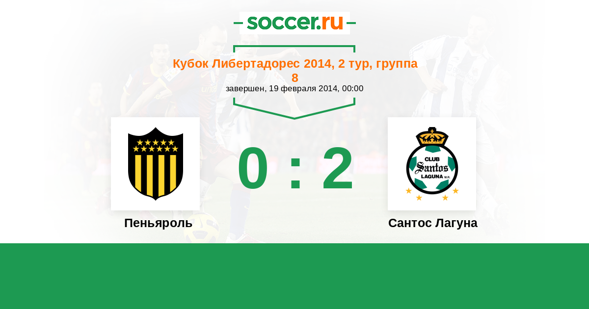 Пеньяроль - Сантос Лагуна: обзор матча 19 февраля 2014