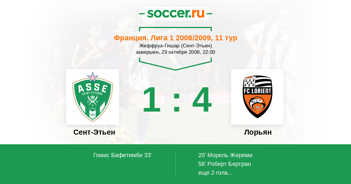 Сент-Этьен - Лорьян: обзор матча 29 октября 2008