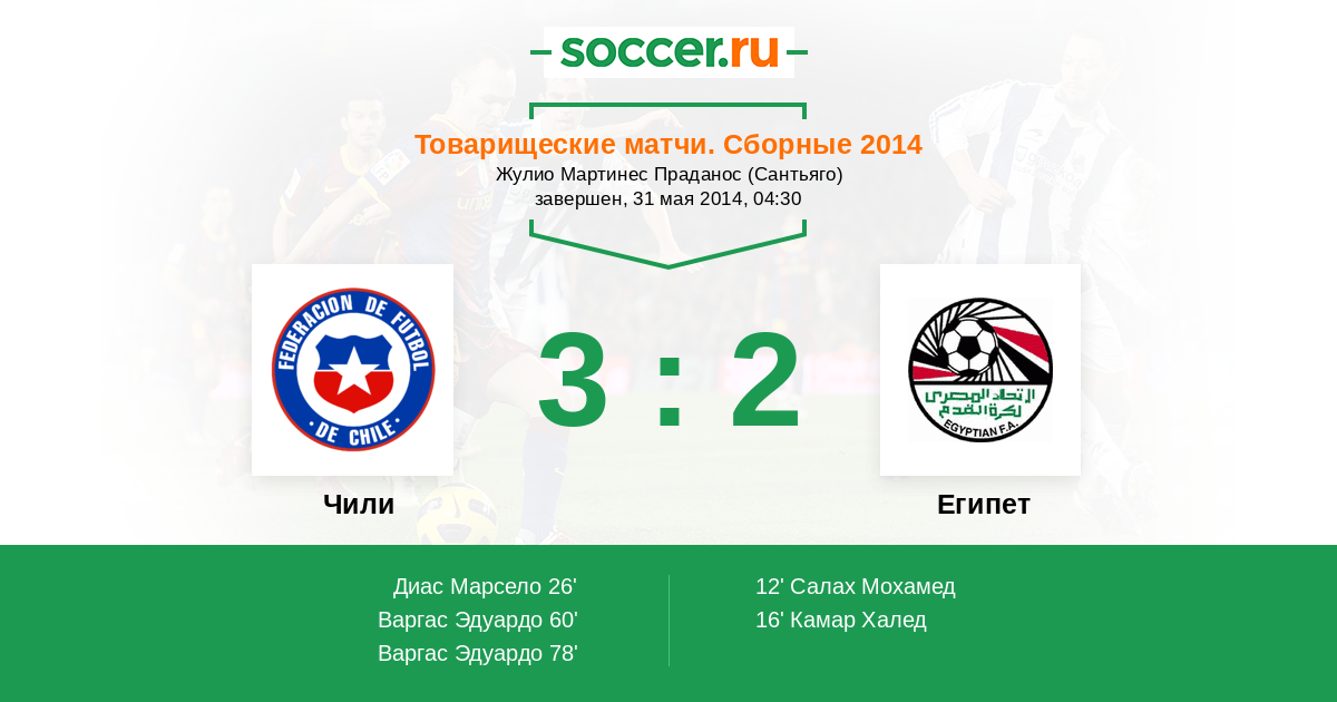 Чили - Египет: обзор матча 31 мая 2014