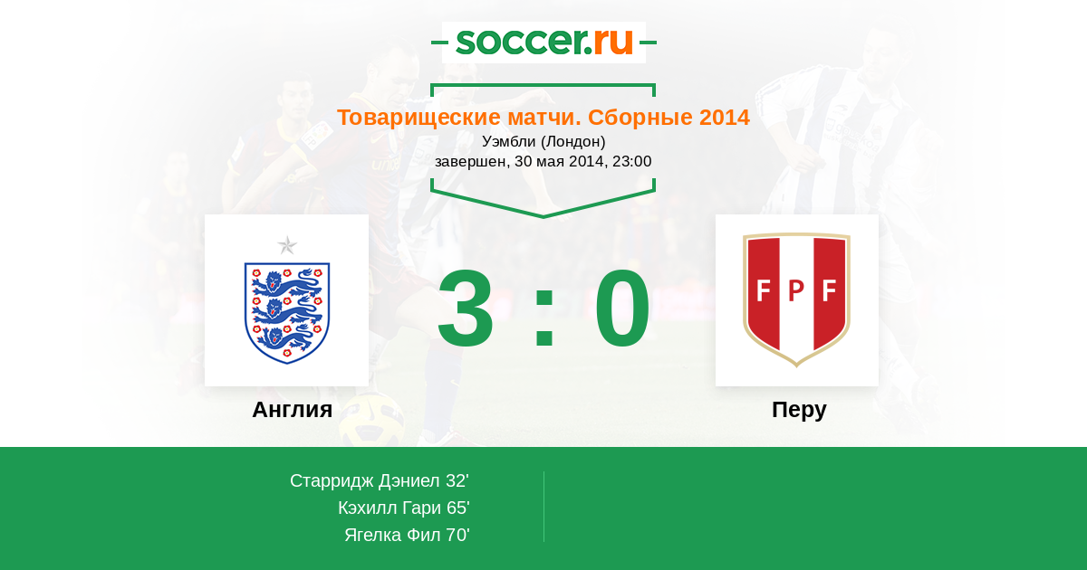 Англия - Перу: обзор матча 30 мая 2014
