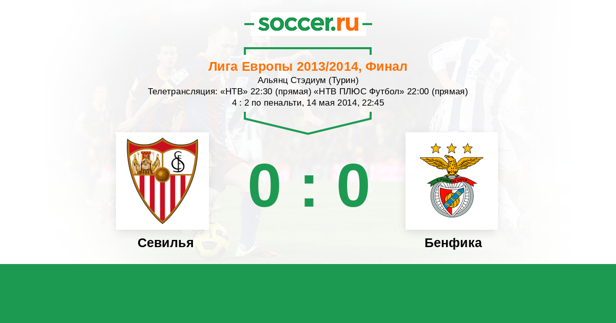 Севилья - Бенфика: обзор матча 14 мая 2014