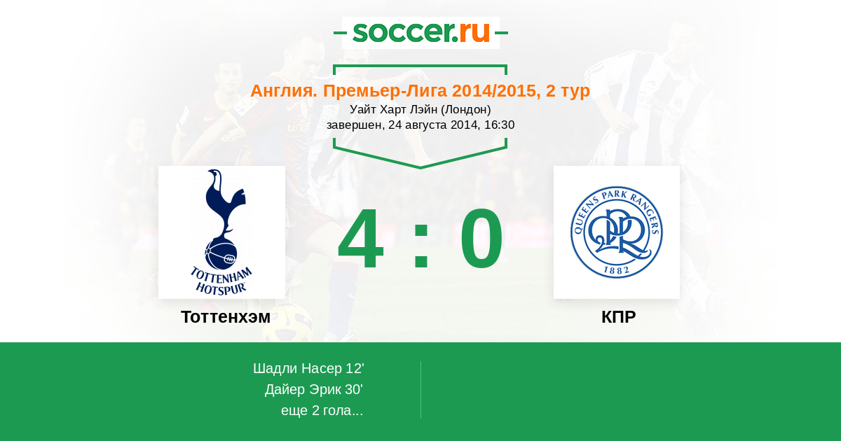 Тоттенхэм - КПР: обзор матча 24 августа 2014