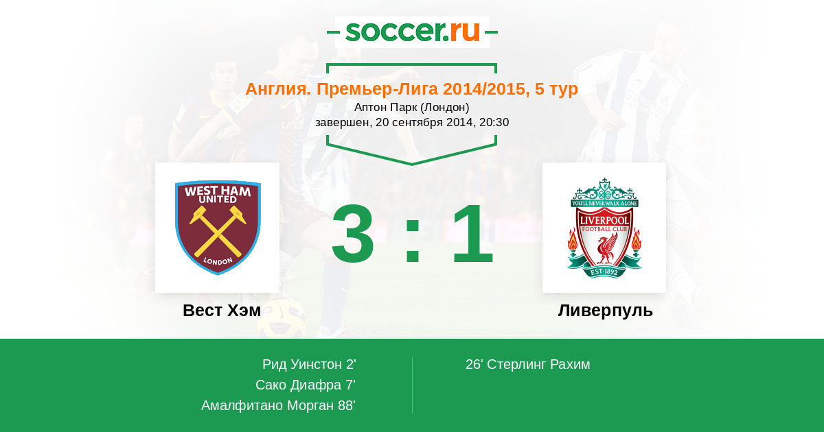 Вест Хэм - Ливерпуль: обзор матча 20 сентября 2014