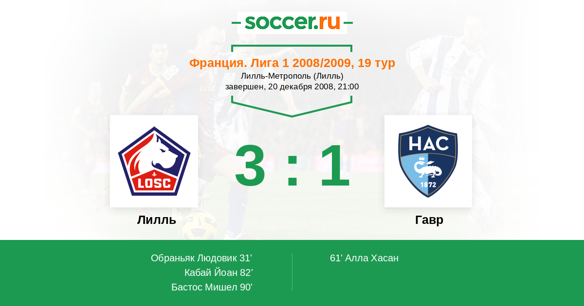 Лилль - Гавр: обзор матча 20 декабря 2008
