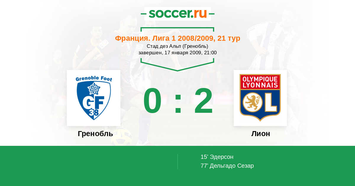 Гренобль - Лион: обзор матча 17 января 2009