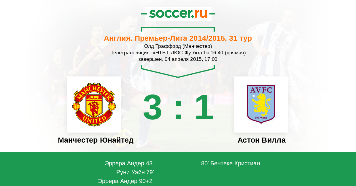 Манчестер Юнайтед - Астон Вилла: обзор матча 4 апреля 2015