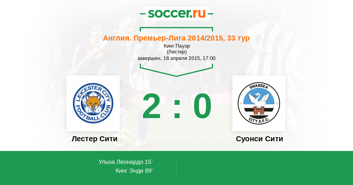 Лестер Сити - Суонси Сити: обзор матча 18 апреля 2015