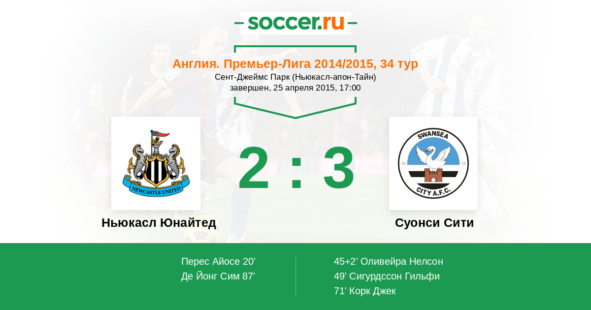 Ньюкасл Юнайтед - Суонси Сити: обзор матча 25 апреля 2015