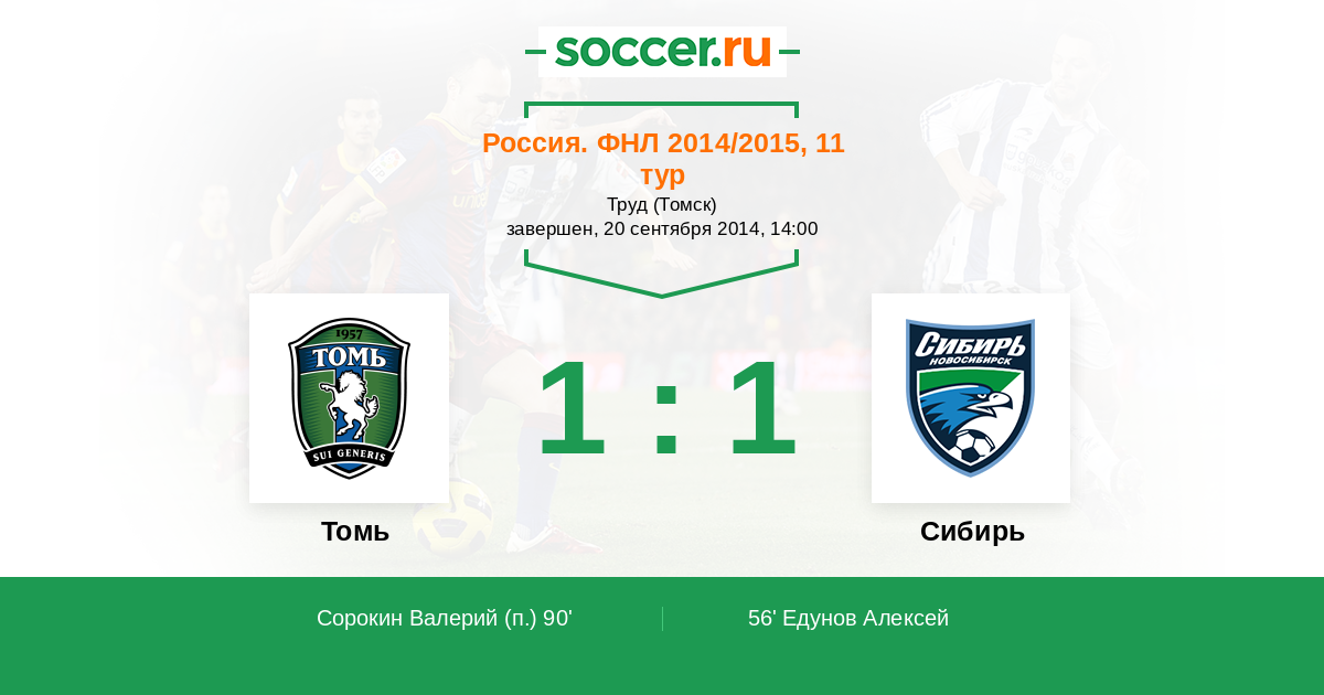 Томь - Сибирь: обзор матча 20 сентября 2014