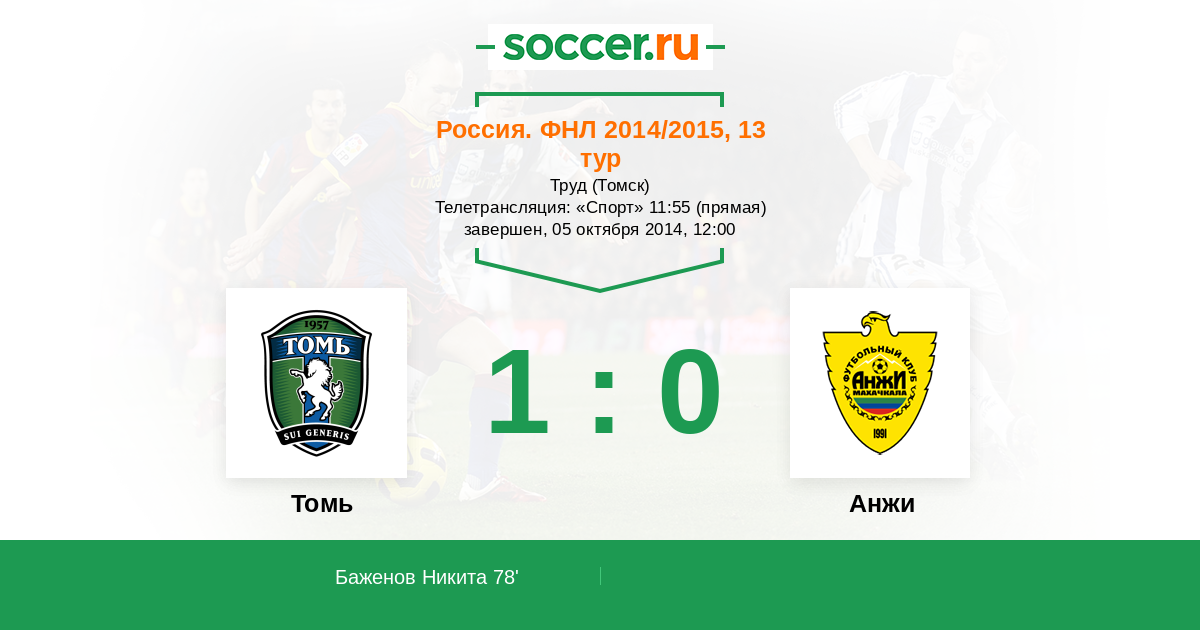 Томь - Анжи: обзор матча 5 октября 2014