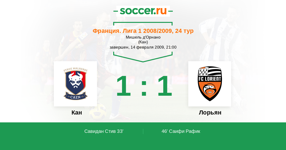 Кан - Лорьян: обзор матча 14 февраля 2009