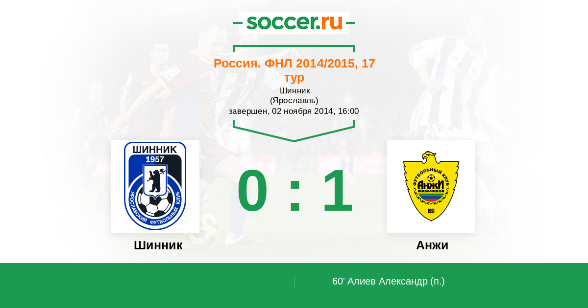Шинник - Анжи: обзор матча 2 ноября 2014