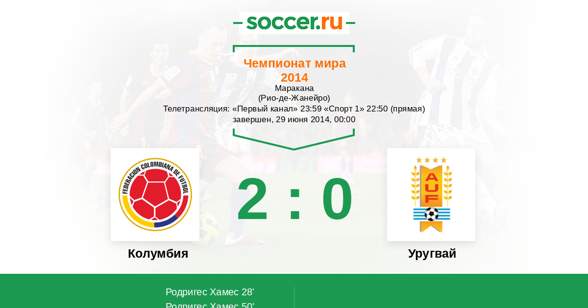 Колумбия - Уругвай: обзор матча 29 июня 2014